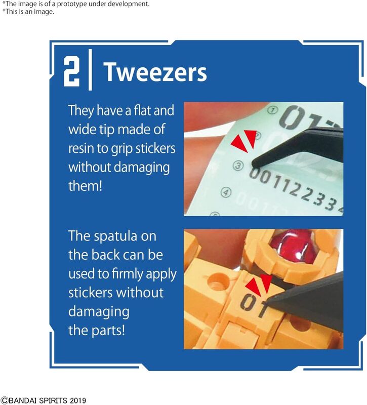 • Las pinzas de precisión y el separador están fabricados en resina, un material que protege las piezas y calcomanías de posibles arañazos.
