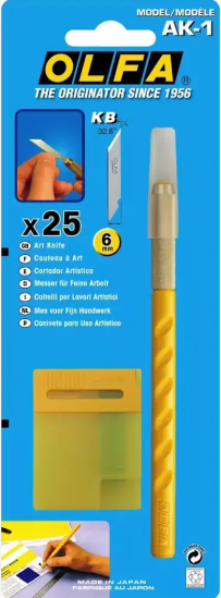 OLFA AK-1 es un buen Cutter de precisión, El mango es ligero y resistente perfecto. Este Kit te viene el mango y 5 cuchillas KB.
